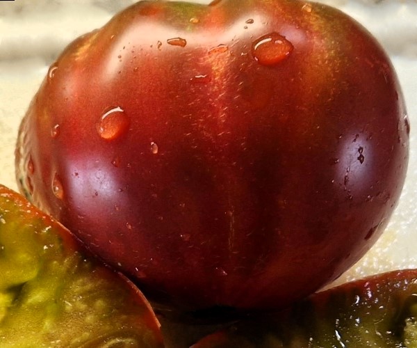 ‚Ananas noire‘ ist eine äußerlich rötlich bis rotbraune Fleischtomate mit intensiven würzigen Aroma. Das Fruchtfleisch ist hell, grüngelblich und in der Mitte rötlich marmoriert.