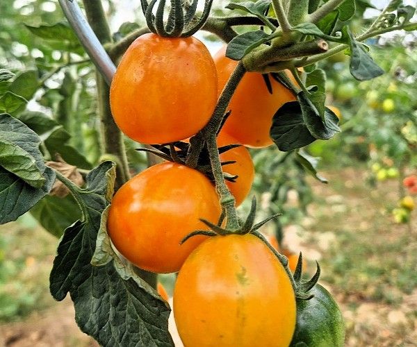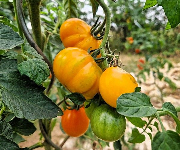 ‚Ananas Prune Jaune‘ ist eine leuchtend gelborangene Salattomate mit und punktet mit sehr fruchtig süßem Aroma.