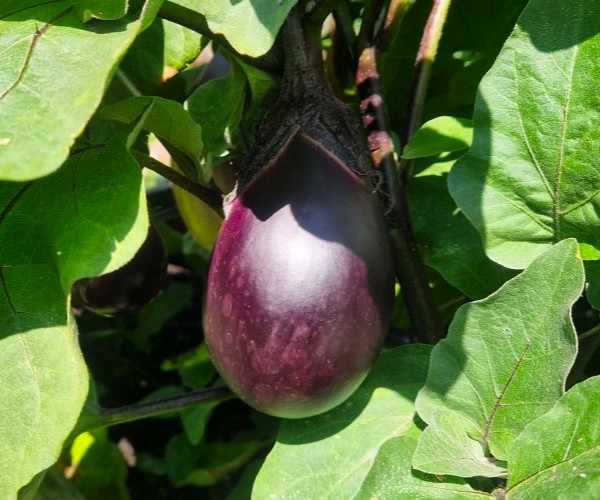 Die russische Auberginensorte ‚Kaschalot‘ produziert schöne dunkelviolette Früchte. Die Pflanzen wachsen sehr kräftig und gesund.