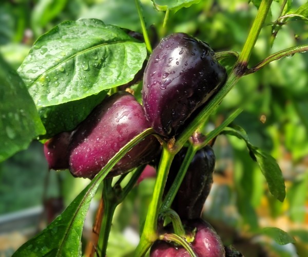 Der Gemüsepaprika ‚Macho‘ hat eine Wuchshöhe von ca. 50 – 60 cm und erzielt einen sehr guten Ertrag. Die unreifen Früchte sind wunderschön violett gefärbt und können auch in diesem Zustand verzehrt werden.